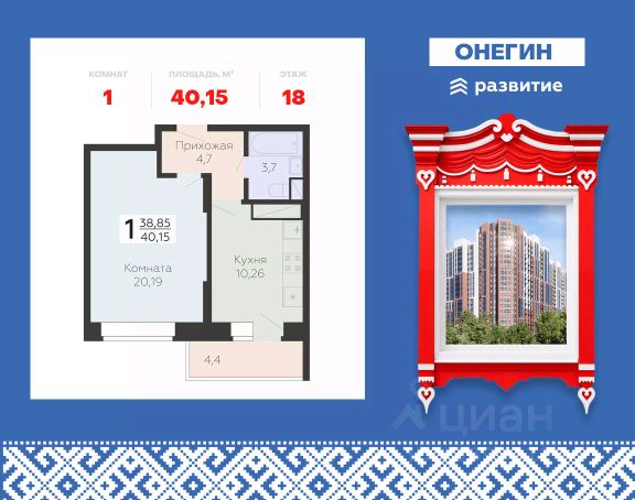 Продается 1-к квартира площадью 41.28 кв. м с черновой отделкой. Квартира находится на 22 этаже 22 этажного дома, в новом жилом комплексе "Онегин", расположенном по адресу: Московская область, г. Подольск, ул. Садовая 3, корп. 1Б. "Онегин" - комфорт в деталях. Проект от федерального застройщика "Развитие" расположился в центральной части Подольска - города-спутника столицы. Жилой комплекс состоит из 10 секций переменной высоты (20 - 22 этажа) и включает в себя 510 квартир, собственную инфраструктуру, закрытый благоустроенный двор-парк. Прекрасный баланс города и природы - ЖК "Онегин". Расположение Пешком: - 5 мин. до остановки "Красная горка"; - 10 мин. до склона у реки Пахры; - 30 мин. до центра Подольска; - 30 мин. до МЦД "Силикатная" (или 15 мин. на автобусе). На автомобиле: - 3 мин. до проспекта Ленина с выездом на Симферопольское шоссе; - 10 мин. до МЦД-2 "Подольск"; - 10 минут до горнолыжного комплекса "Красная Горка"; - 30 мин. до ст. метро "Бульвар Дмитрия Донского"; - 35 мин. до МКАД. Благоустройство - большой приватный двор-парк; - всесезонная растительность: взрослые деревья, кустарники, травы, цветочные клумбы; - декоративные камни и многоуровневое освещение для уютной атмосферы; - мощеные тропинки с деревянными скамейками для отдыха; - площадки для малышей с безопасным покрытием; - яркие игровые комплексы для подростков; - спортивный корт для футбола и баскетбола; - многофункциональная воркаут-зона; - уютные места для чтения или работы в тишине. Комфорт и безопасность - монолитно-кирпичные дома с высокой тепло- и шумоизоляцией; - витражные окна, наполняющее квартиры и подъезды светом; - стильные и просторные входные группы; - вход в подъезд без ступенек и перепадов, комфортный доступ для родителей с колясками, пожилых людей и маломобильных жителей; - на первом этаже предусмотрены просторные колясочные; - 2 пассажирских лифта и 1 грузовой в каждом подъезде; - система охраны и круглосуточное видеонаблюдение. Инфраструктура и окружение - подземный паркинг на 262 машино-места, спуститься к автомобилю можно прямо с вашего этажа на лифте - быстро и удобно в любую погоду; - гостевые парковочные места на прилегающей территории; - кладовки расположены на -1 и -2 этажах, хранить сезонные вещи легко и безопасно: доступ - напрямую с вашего этажа на лифте; - школы, частные и муниципальные детские сады, магазины, кафе и все сервисы бытовых услуг в шаговой доступности; - на первых этажах - коммерческие помещения, все необходимое рядом; - 3 фитнес-центра, стадионы "Зенит" и "Подолье", 4 взрослых и детских бассейна; - торгово-развлекательные центры "Капитолий", "Галерея", "Кварц"; - парк культуры и отдыха имени В. Талалихина, музей-заповедник "Подолье", горнолыжный комплекс "Красная Горка", исторические усадьбы "Остафьево" и "Дубровицы" и другие места для семейного отдыха.