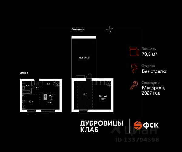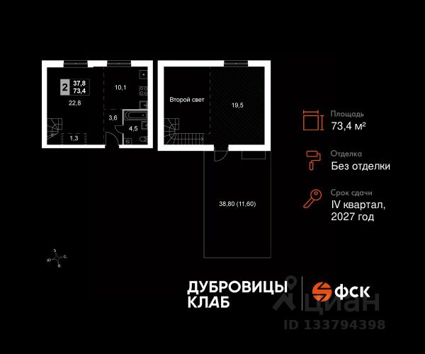 Прямая продажа от застройщика! Загородный жилой комплекс комфорт-класса. Продаётся 2-к квартира 104 общей площадью 60.4 кв.м на 2-м этаже 4 этажного дома. Без отделки. Расположение комплекса: "Дубровицы Клаб" — это современный малоэтажный комплекс комфорт-класса, который сочетает в себе атмосферу уюта загородной жизни и все преимущества развитой городской инфраструктуры. В проекте представлено два формата жилья - комфортные таунхаусы и эргономичные квартиры. Территория "Дубровицы Клаб" приватные зелёные дворы без автомобилей, школа, детский сад и спорткомплекс с бассейном. Транспортная доступность: - 20 минут на машине до станции МЦД "Подольск" - 50 минут на машине до МКАД - 50 минут на машине до ст.метро Улица Скобелевская Внутренняя инфраструктура: "Дубровицы Клаб" объединяет динамику городской жизни и спокойствие природы, создавая пространство, где работа и отдых, движение и умиротворение сливаются в единый поток — в жизнь, наполненную балансом и вдохновением. Место силы — это философия жизни, воплощённая в благоустроенной среде загородного комплекса "Дубровицы Клаб". Здесь всё создано для восстановления энергии и гармонии: прогулочные маршруты, зоны отдыха, воркаут-площадки и природные пространства, плавно переходящие в уют жилых кварталов. Для удобства жителей на территории комплекса открыта торговая галерея, где собрано всё необходимое: супермаркет, аптека, зоомагазин, винный бутик, лавка деликатесов, пекарня, химчистка и дом быта.
