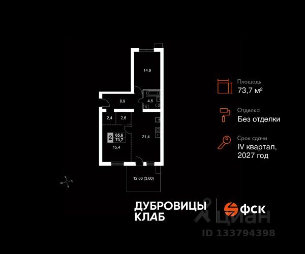 Прямая продажа от застройщика! Загородный жилой комплекс комфорт-класса. Продаётся 3-к квартира 15 общей площадью 73.9 кв.м на 1-м этаже 4 этажного дома. Без отделки. Расположение комплекса: "Дубровицы Клаб" — это современный малоэтажный комплекс комфорт-класса, который сочетает в себе атмосферу уюта загородной жизни и все преимущества развитой городской инфраструктуры. В проекте представлено два формата жилья - комфортные таунхаусы и эргономичные квартиры. Территория "Дубровицы Клаб" приватные зелёные дворы без автомобилей, школа, детский сад и спорткомплекс с бассейном. Транспортная доступность: - 20 минут на машине до станции МЦД "Подольск" - 50 минут на машине до МКАД - 50 минут на машине до ст.метро Улица Скобелевская Внутренняя инфраструктура: "Дубровицы Клаб" объединяет динамику городской жизни и спокойствие природы, создавая пространство, где работа и отдых, движение и умиротворение сливаются в единый поток — в жизнь, наполненную балансом и вдохновением. Место силы — это философия жизни, воплощённая в благоустроенной среде загородного комплекса "Дубровицы Клаб". Здесь всё создано для восстановления энергии и гармонии: прогулочные маршруты, зоны отдыха, воркаут-площадки и природные пространства, плавно переходящие в уют жилых кварталов. Для удобства жителей на территории комплекса открыта торговая галерея, где собрано всё необходимое: супермаркет, аптека, зоомагазин, винный бутик, лавка деликатесов, пекарня, химчистка и дом быта.