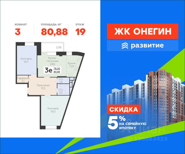 Продается квартира площадью 87.10 кв. м с отделкой White box. Квартира находится на 17 этаже 22 этажного дома, в новом жилом комплексе "Онегин", расположенном по адресу: Московская область, г. Подольск, ул. Садовая 3, корп. 1. "Онегин" - комфорт в деталях. Проект от федерального застройщика "Развитие" расположился в центральной части Подольска - города-спутника столицы. Жилой комплекс состоит из 10 секций переменной высоты (20 - 22 этажа) и включает в себя 510 квартир, собственную инфраструктуру, закрытый благоустроенный двор-парк. Прекрасный баланс города и природы - ЖК "Онегин". Расположение Пешком: - 5 мин. до остановки "Красная горка"; - 10 мин. до склона у реки Пахры; - 30 мин. до центра Подольска; - 30 мин. до МЦД "Силикатная" (или 15 мин. на автобусе). На автомобиле: - 3 мин. до проспекта Ленина с выездом на Симферопольское шоссе; - 10 мин. до МЦД-2 "Подольск"; - 10 минут до горнолыжного комплекса "Красная Горка"; - 30 мин. до ст. метро "Бульвар Дмитрия Донского"; - 35 мин. до МКАД. Благоустройство - большой приватный двор-парк; - всесезонная растительность: взрослые деревья, кустарники, травы, цветочные клумбы; - декоративные камни и многоуровневое освещение для уютной атмосферы; - мощеные тропинки с деревянными скамейками для отдыха; - площадки для малышей с безопасным покрытием; - яркие игровые комплексы для подростков; - спортивный корт для футбола и баскетбола; - многофункциональная воркаут-зона; - уютные места для чтения или работы в тишине. Комфорт и безопасность - монолитно-кирпичные дома с высокой тепло- и шумоизоляцией; - витражные окна, наполняющее квартиры и подъезды светом; - стильные и просторные входные группы; - вход в подъезд без ступенек и перепадов, комфортный доступ для родителей с колясками, пожилых людей и маломобильных жителей; - на первом этаже предусмотрены просторные колясочные; - 2 пассажирских лифта и 1 грузовой в каждом подъезде; - система охраны и круглосуточное видеонаблюдение. Инфраструктура и окружение - подземный паркинг на 262 машино-места, спуститься к автомобилю можно прямо с вашего этажа на лифте - быстро и удобно в любую погоду; - гостевые парковочные места на прилегающей территории; - кладовки расположены на -1 и -2 этажах, хранить сезонные вещи легко и безопасно: доступ - напрямую с вашего этажа на лифте; - школы, частные и муниципальные детские сады, магазины, кафе и все сервисы бытовых услуг в шаговой доступности; - на первых этажах - коммерческие помещения, все необходимое рядом; - 3 фитнес-центра, стадионы "Зенит" и "Подолье", 4 взрослых и детских бассейна; - торгово-развлекательные центры "Капитолий", "Галерея", "Кварц"; - парк культуры и отдыха имени В. Талалихина, музей-заповедник "Подолье", горнолыжный комплекс "Красная Горка", исторические усадьбы "Остафьево" и "Дубровицы" и другие места для семейного отдыха. Продается 3-комнатная квартира в ипотеку в новостройке в Подольске.