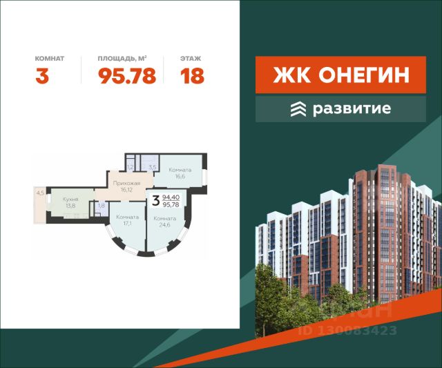 Продается квартира площадью 91.38 кв. м с отделкой white box на 9 этаже 22 этажного дома. Квартира находится в новом жилом комплексе "Онегин", расположенном по адресу: Московская область, г. Подольск, ул. Садовая 3, корп. 1. "Онегин" - начало новой жизни. Проект от девелопера "Развитие" расположился в центральной части Подольска - города-спутника столицы. Жилой комплекс состоит из 10 секций переменной высоты (20 - 22 этажа) и включает в себя 510 квартир, собственную инфраструктуру, закрытый благоустроенный двор-парк, подземный паркинг на 262 машино-места. Прекрасный баланс города и природы - ЖК "Онегин". Расположение Пешком: - 5 мин. до остановки "Красная горка"; - 10 мин. до склона у реки Пахры; - 30 мин. до МЦД "Силикатная" (или 15 мин. на автобусе). На автомобиле: - 3 мин. до проспекта Ленина с выездом на Симферопольское шоссе; - 10 мин. до центра Подольска; - 30 мин. до ст. метро "Бульвар Дмитрия Донского"; - 35 мин. до МКАД; - 1 час до центра Москвы. Благоустройство - большой приватный двор только для пешеходов; - собственный сквер с всесезонной растительностью; - яркий игровой комплекс для детей всех возрастов; - спортивный корт с тренажерами; - площадка для баскетбола и футбола; - стильная входная группа с витражным остеклением; - 2 пассажирских лифта и 1 грузовой в каждом подъезде; - беседки и скамьи для отдыха; - экологически-чистое игровое и спортивное оборудование; - освещение в темное время суток; - гостевая автостоянка на отдельной территории; - все сервисы бытовых услуг в шаговой доступности. Окружение - досуговые пространства в любое время года: парк культуры и отдыха имени В. Талалихина, музей-заповедник "Подолье", горнолыжный комплекс "Красная Горка", исторические усадьбы "Остафьево" и "Дубровицы"; - школа и детский сад в 5 минутах ходьбы; - торгово-развлекательные центры "Капитолий", "Галерея", "Кварц"; - 3 фитнес-центра, стадионы "Зенит" и "Подолье", 4 взрослых и детских бассейна.