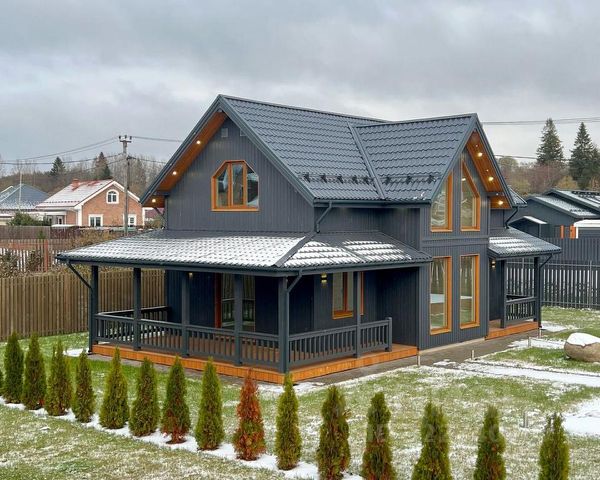 Первый этаж - веранда, просторная кухня-гостиная, санузел, удобная лестница, второй этаж - 3 спальни, санузел.