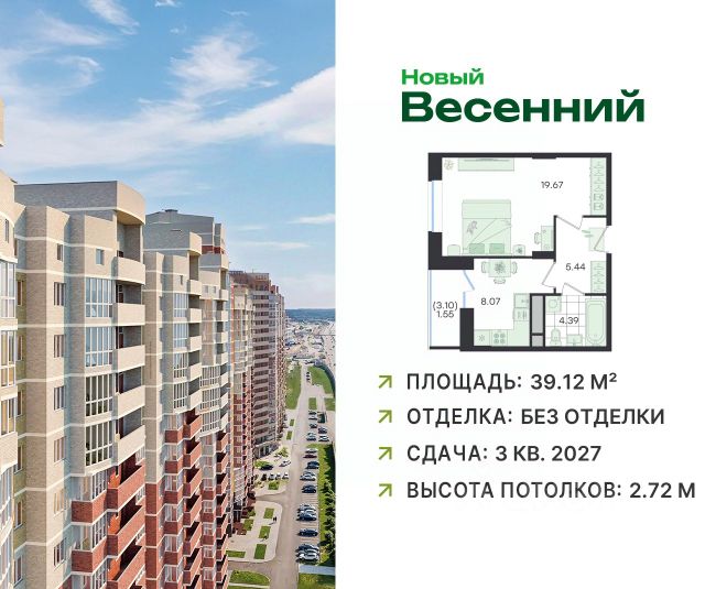 О проекте "Новый Весенний" Жилой дом, начинающий новую жизнь Проект "Новый Весенний" расположен в зеленом поселке Сосновый Бор Подольского округа, рядом с большим лесопарком, что открывает жителям панорамные виды и комфортное пространство для жизни. Подольск — крупный город с развитой инфраструктурой. Вблизи дома уже сформирована полноценная городская среда: парки, прогулочные зоны, школы, детские сады, поликлиники, торгово-развлекательные центры и МФЦ. Проект сочетает в себе городскую инфраструктуру, транспортную доступность, близость природы и представляет собой дом переменной этажности (20-23 этажа) на 620 квартир. Степень строительной готовности монолитных работ около 90% — впереди завершение верхних этажей, монтаж кровли, инженерных систем, установка окон, фасадные и отделочные работы. Кроме того, девелопер обустроит прилегающую территорию: детские и спортивные площадки, а также наземную парковку. Преимущества проекта: • Лесопарк в двух минутах пешком Природа рядом — прогулки, спорт, отдых для всей семьи. • Панорамные виды и светлые квартиры Высокие этажи открывают прекрасные перспективы на Подмосковье. В квартирах предусмотрены лоджии с панорамным остеклением. • Кладовые помещения для хранения сезонных вещей на -1 этаже • Собственная коммерческая инфраструктура Магазины, сервисы, кафе и аптеки на первом этаже дома. • Транспортная доступность Удобный выезд на Симферопольское шоссе, 25 минут до МКАДа, рядом станция МЦД-2 "Подольск". • Развитая городская инфраструктура Школы, детские сады, поликлиники, МФЦ, торговые центры и супермаркеты в шаговой доступности. • Архитектура: фасады из четырех видов кирпича, лобби с дизайнерскими элементами Локация: Проект "Новый Весенний" расположен в Подольском округе Московской области, в поселке Сосновый Бор. Район сочетает природное окружение и развитую городскую среду: • Лесопарк — 2 минуты пешком • Центр Подольска — 15 минут на машине • Гипермаркет "Глобус" и "Леруа Мерлен" — рядом • Спортивно-оздоровительный комплекс с бассейном и картинг-клубом Инфраструктура: • В шаговой доступности: • муниципальные и частные детские сады и школы • детская и взрослая поликлиника • больницы и медицинские центры • МФЦ • торгово-развлекательные центры • супермаркеты, кафе, рестораны • прогулочные зоны и лесопарк Прилегающая территория благоустроена: детские и спортивные площадки, озеленение, наземная парковка. Транспорт: Общественный транспорт • До м. "Аннино" — около 30 минут (маршрут 1231) • До станции МЦД-2 "Подольск" — около 10 минут на машине (маршруты 7к, 44) На автомобиле • 15 минут до центра Подольска • 30 минут до МКАДа • около 1 часа 15 минут до центра Москвы.