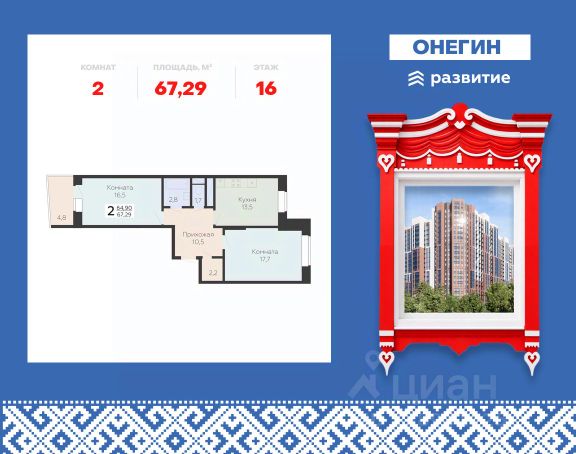 Продается 3-к квартира площадью 90.68 кв. м с черновой отделкой. Квартира находится на 16 этаже 22 этажного дома, в новом жилом комплексе "Онегин", расположенном по адресу: Московская область, г. Подольск, ул. Садовая 3, корп. 1Б. "Онегин" - комфорт в деталях. Проект от федерального застройщика "Развитие" расположился в центральной части Подольска - города-спутника столицы. Жилой комплекс состоит из 10 секций переменной высоты (20 - 22 этажа) и включает в себя 510 квартир, собственную инфраструктуру, закрытый благоустроенный двор-парк. Прекрасный баланс города и природы - ЖК "Онегин". Расположение Пешком: - 5 мин. до остановки "Красная горка"; - 10 мин. до склона у реки Пахры; - 30 мин. до центра Подольска; - 30 мин. до МЦД "Силикатная" (или 15 мин. на автобусе). На автомобиле: - 3 мин. до проспекта Ленина с выездом на Симферопольское шоссе; - 10 мин. до МЦД-2 "Подольск"; - 10 минут до горнолыжного комплекса "Красная Горка"; - 30 мин. до ст. метро "Бульвар Дмитрия Донского"; - 35 мин. до МКАД. Благоустройство - большой приватный двор-парк; - всесезонная растительность: взрослые деревья, кустарники, травы, цветочные клумбы; - декоративные камни и многоуровневое освещение для уютной атмосферы; - мощеные тропинки с деревянными скамейками для отдыха; - площадки для малышей с безопасным покрытием; - яркие игровые комплексы для подростков; - спортивный корт для футбола и баскетбола; - многофункциональная воркаут-зона; - уютные места для чтения или работы в тишине. Комфорт и безопасность - монолитно-кирпичные дома с высокой тепло- и шумоизоляцией; - витражные окна, наполняющее квартиры и подъезды светом; - стильные и просторные входные группы; - вход в подъезд без ступенек и перепадов, комфортный доступ для родителей с колясками, пожилых людей и маломобильных жителей; - на первом этаже предусмотрены просторные колясочные; - 2 пассажирских лифта и 1 грузовой в каждом подъезде; - система охраны и круглосуточное видеонаблюдение. Инфраструктура и окружение - подземный паркинг на 262 машино-места, спуститься к автомобилю можно прямо с вашего этажа на лифте - быстро и удобно в любую погоду; - гостевые парковочные места на прилегающей территории; - кладовки расположены на -1 и -2 этажах, хранить сезонные вещи легко и безопасно: доступ - напрямую с вашего этажа на лифте; - школы, частные и муниципальные детские сады, магазины, кафе и все сервисы бытовых услуг в шаговой доступности; - на первых этажах - коммерческие помещения, все необходимое рядом; - 3 фитнес-центра, стадионы "Зенит" и "Подолье", 4 взрослых и детских бассейна; - торгово-развлекательные центры "Капитолий", "Галерея", "Кварц"; - парк культуры и отдыха имени В. Талалихина, музей-заповедник "Подолье", горнолыжный комплекс "Красная Горка", исторические усадьбы "Остафьево" и "Дубровицы" и другие места для семейного отдыха.