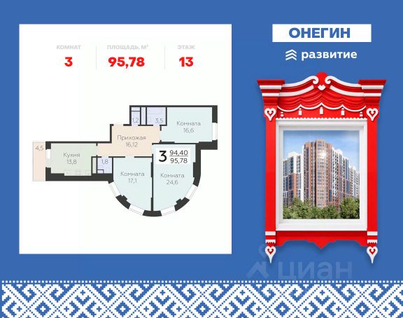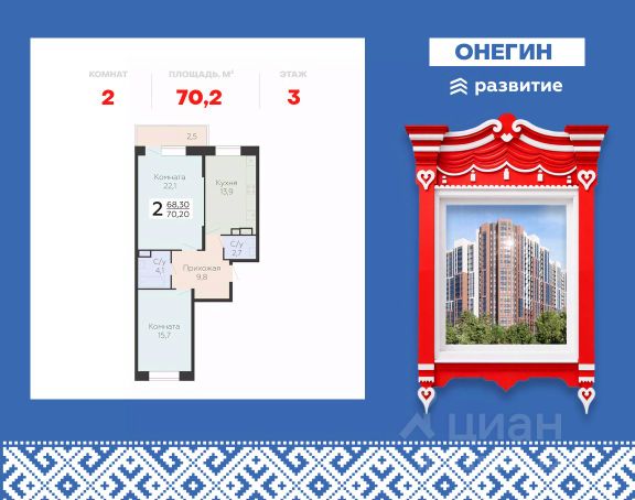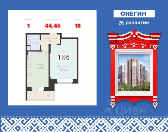 Продается 1-к квартира площадью 41.28 кв. м с черновой отделкой. Квартира находится на 22 этаже 22 этажного дома, в новом жилом комплексе "Онегин", расположенном по адресу: Московская область, г. Подольск, ул. Садовая 3, корп. 1Б. "Онегин" - комфорт в деталях. Проект от федерального застройщика "Развитие" расположился в центральной части Подольска - города-спутника столицы. Жилой комплекс состоит из 10 секций переменной высоты (20 - 22 этажа) и включает в себя 510 квартир, собственную инфраструктуру, закрытый благоустроенный двор-парк. Прекрасный баланс города и природы - ЖК "Онегин". Расположение Пешком: - 5 мин. до остановки "Красная горка"; - 10 мин. до склона у реки Пахры; - 30 мин. до центра Подольска; - 30 мин. до МЦД "Силикатная" (или 15 мин. на автобусе). На автомобиле: - 3 мин. до проспекта Ленина с выездом на Симферопольское шоссе; - 10 мин. до МЦД-2 "Подольск"; - 10 минут до горнолыжного комплекса "Красная Горка"; - 30 мин. до ст. метро "Бульвар Дмитрия Донского"; - 35 мин. до МКАД. Благоустройство - большой приватный двор-парк; - всесезонная растительность: взрослые деревья, кустарники, травы, цветочные клумбы; - декоративные камни и многоуровневое освещение для уютной атмосферы; - мощеные тропинки с деревянными скамейками для отдыха; - площадки для малышей с безопасным покрытием; - яркие игровые комплексы для подростков; - спортивный корт для футбола и баскетбола; - многофункциональная воркаут-зона; - уютные места для чтения или работы в тишине. Комфорт и безопасность - монолитно-кирпичные дома с высокой тепло- и шумоизоляцией; - витражные окна, наполняющее квартиры и подъезды светом; - стильные и просторные входные группы; - вход в подъезд без ступенек и перепадов, комфортный доступ для родителей с колясками, пожилых людей и маломобильных жителей; - на первом этаже предусмотрены просторные колясочные; - 2 пассажирских лифта и 1 грузовой в каждом подъезде; - система охраны и круглосуточное видеонаблюдение. Инфраструктура и окружение - подземный паркинг на 262 машино-места, спуститься к автомобилю можно прямо с вашего этажа на лифте - быстро и удобно в любую погоду; - гостевые парковочные места на прилегающей территории; - кладовки расположены на -1 и -2 этажах, хранить сезонные вещи легко и безопасно: доступ - напрямую с вашего этажа на лифте; - школы, частные и муниципальные детские сады, магазины, кафе и все сервисы бытовых услуг в шаговой доступности; - на первых этажах - коммерческие помещения, все необходимое рядом; - 3 фитнес-центра, стадионы "Зенит" и "Подолье", 4 взрослых и детских бассейна; - торгово-развлекательные центры "Капитолий", "Галерея", "Кварц"; - парк культуры и отдыха имени В. Талалихина, музей-заповедник "Подолье", горнолыжный комплекс "Красная Горка", исторические усадьбы "Остафьево" и "Дубровицы" и другие места для семейного отдыха. Квартира с отделкой в Подольске.