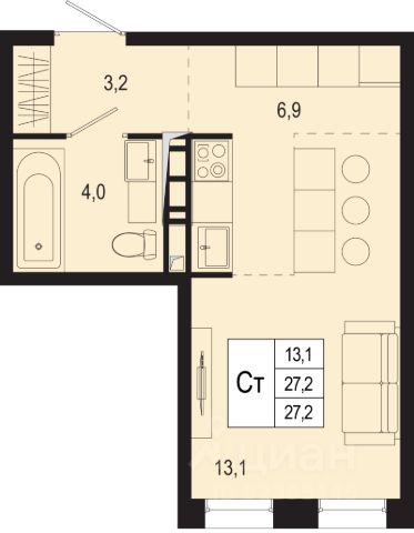 Продаётся студия в строящемся доме (14), срок сдачи: I-кв. 2026, общей площадью 27.2 кв.м., на 6 этаже. 17-ти этажный 5-ти секционный жилой дом с нежилыми помещениями, расположенный по адресу : г. о. Подольск, ул. Садовая д.14