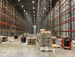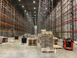 Номер ЛОТА: 1320. Сдаётся в аренду в СК "ЛОДЖИСТИК" блок 6000 кв. м, из них 4500 по полу, мезонин 500 кв. м и офисные помещения в наличии. Отличная инфраструктура, рабочим удобно добираться. Полы антипыль, ворота доковые 4 шт., потолки 12. Стеллажи в наличии — 800 руб./кв. м. Все коммуникации: электричество, водоснабжение, санузлы, хозблок (кухня, раздевалка). Система пожаротушения — автомат, система видеонаблюдения. Охраняемая территория. НДС 20%.