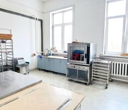 Oсновное оборудовaние: печь конвекция+пар, pасстоечный шкаф, тестораскаточная машина, морозилка, холодильник , планетарные миксеры, весы. Столы: деревянный металл и искусственный камень.