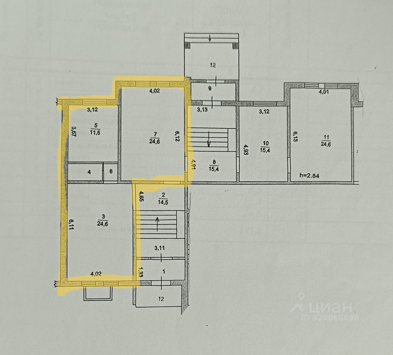 Потолки: высота потолков 2.9м.