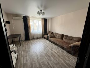В квартире есть всё необходимое для комфортного проживания: косметический ремонт, мебель на кухне и в комнате, а также вся необходимая бытовая техника — кондиционер, холодильник, посудомоечная машина, телевизор и стиральная машина. Кладовая для хранения одежды и вещей. Утепленная просторная лоджия может быть использована как дополнительное место для работы, хранения или отдыха.