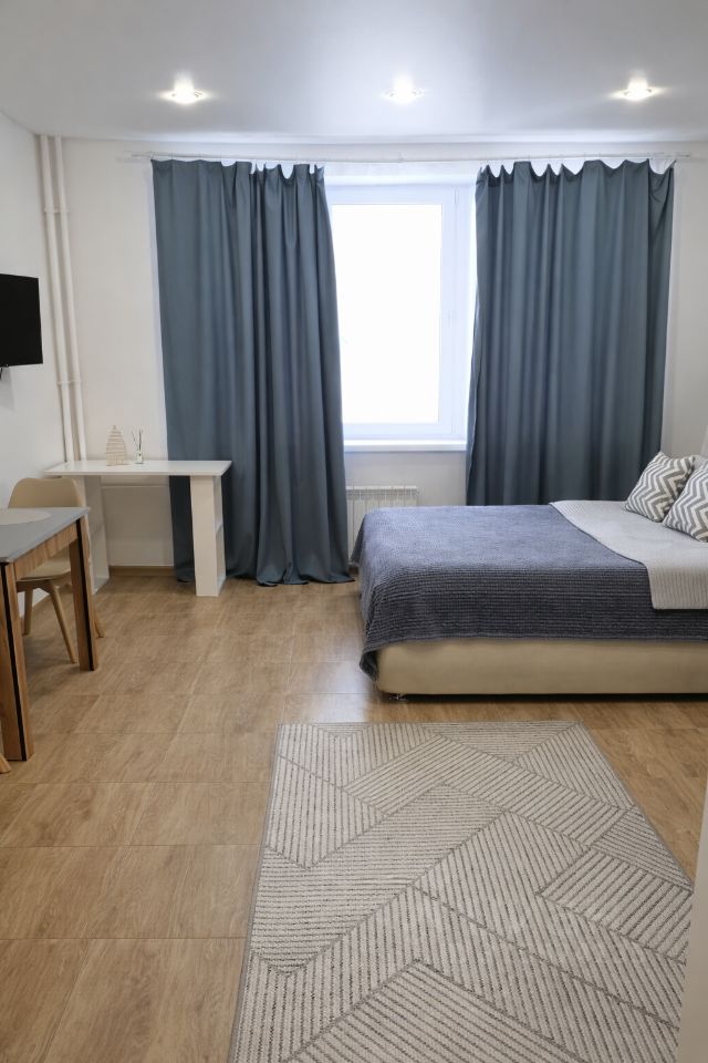 Шикарная квартира-студия в новостройке — отличный вариант для командировочных и гостей города. Огромная кровать king size, дополнительное спальное место, отчётные документы и удобное бесконтактное заселение 24/7.