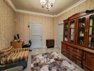 Одна комната изолированная, две смежные. Кухня 8 кв.м. Потолки 3 метра.