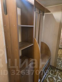 Прихожая с зоной хранения для верхней одежды, обуви и мелких вещей. Просторная комната, площадью 18 кв. м. с видом на тихий двор: трехстворчатый шкаф, 3 спальных места (раскладной диван на 2ух человек и не раскладной - на одного человека), рабочий стол. При желании хозяин может дополнить комнату телевизором. Балкона нет. Кухня площадью 6 кв. м.: кухонный гарнитур, газовая плита с духовым шкафом, обеденная зона. Холодильника на данный момент нет, но этот вопрос решаем. Совмещенный санузел с полноценной ванной и стиральной машинкой.