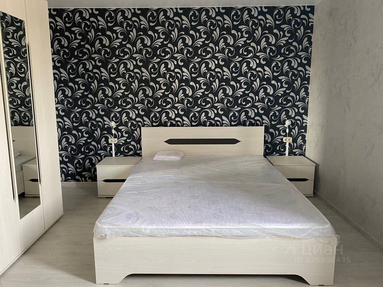 Редкое преимущество для однокомнатной квартиры - просторная кровать с шикарным новым ортопедическим матрасом.
