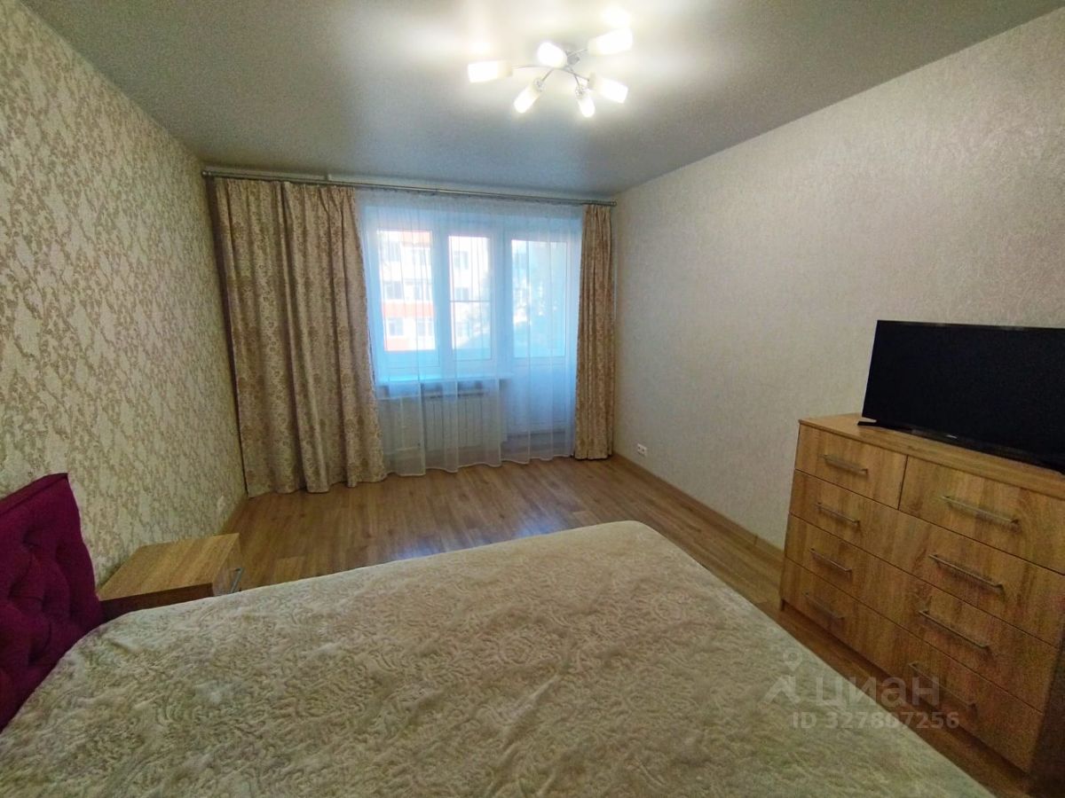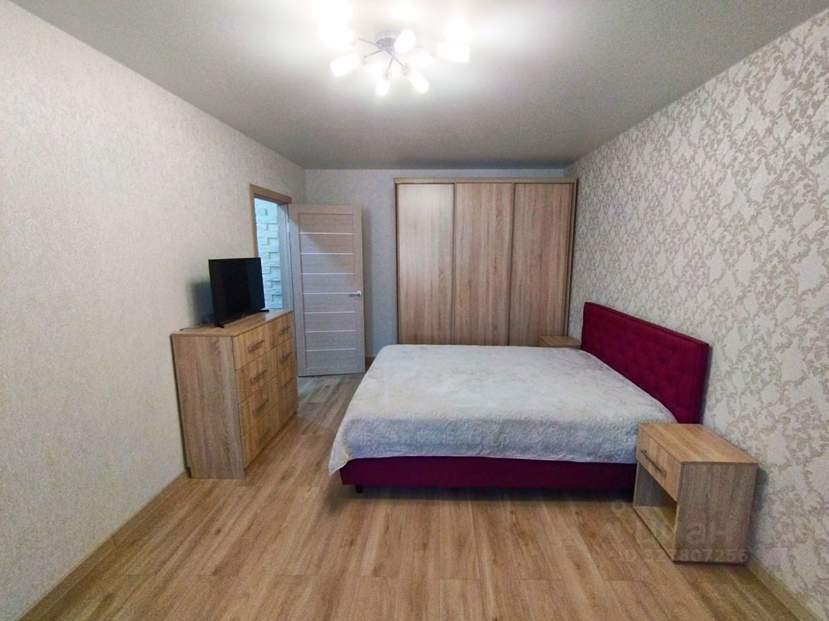 В комнате из мебели в наличии двуспальная кровать, две тумбочки, шкаф-купе, комод, телевизор. Из комнаты выход на застеклённую лоджию тоже с ремонтом.