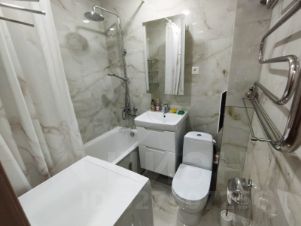 Санузел совмещённый в отличном состоянии с хорошей сантехникой, установлена стиральная машина автомат.