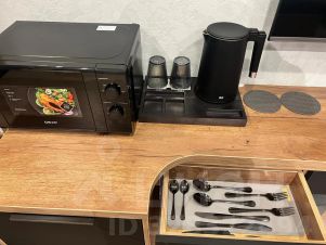 ТВ смарт 4К, кондиционер, холодильник, микроволновая печь, чайник, набор необходимой посуды, чай, кофе, вода без газа.