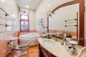 -2 этаж: 3 спальные комнаты с собственной ванной комнатой (душевая, джакузи, унитаз, биде, раковина)