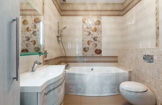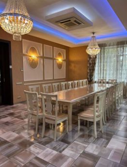В ДОМЕ: 3 этажа, 8 спален, 22 спальных места. Каминный зал - гостиная на 30 персон. Полностью оборудованная кухня-столовая с выходом на террасу, необходимая посуда. СПА-зона. Комната бильярда. Рабочий кабинет. Терраса с садовой мебелью. Дискоклуб 50 кв.м. с барной стойкой.