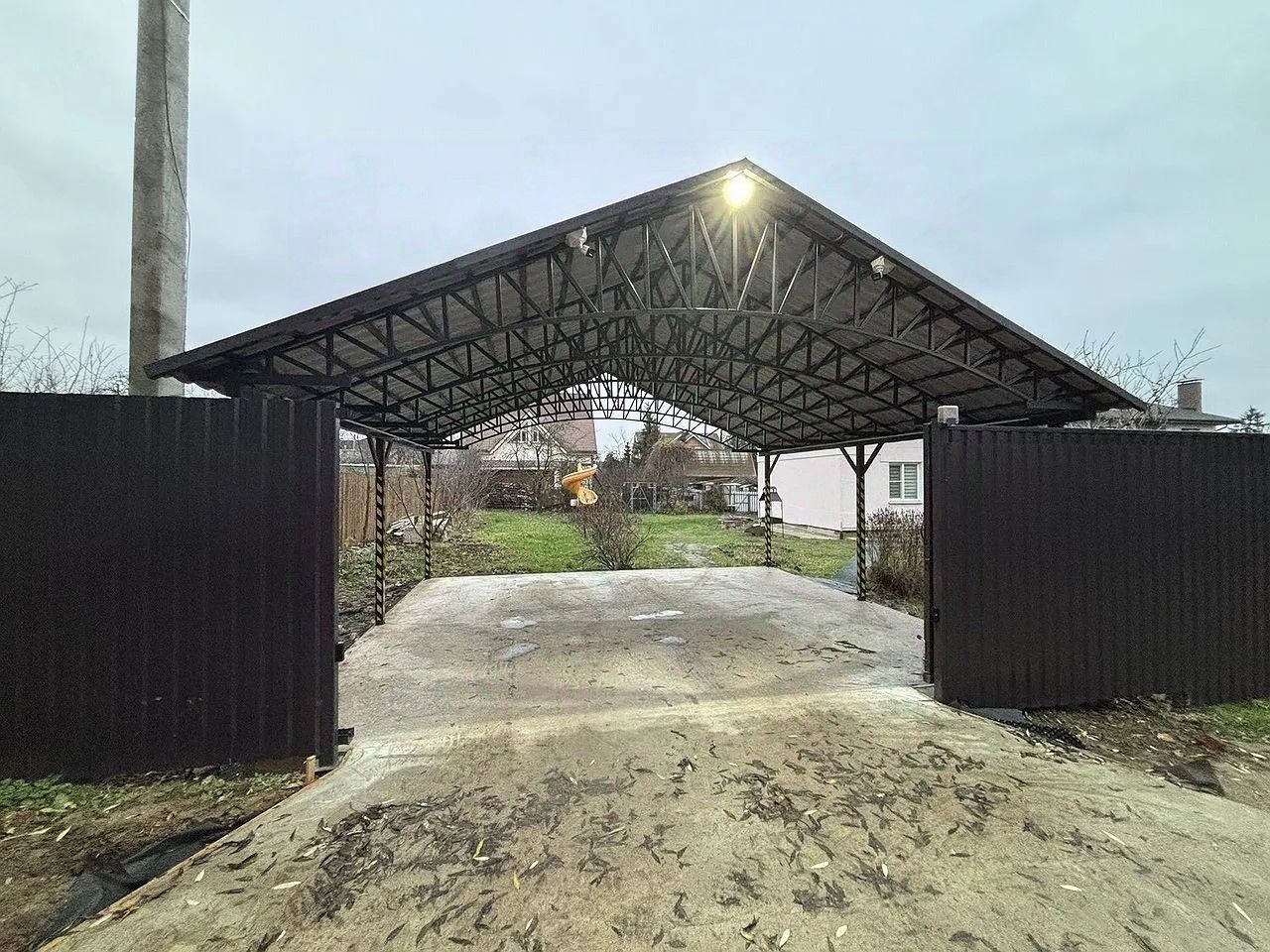 Пapкoвкa-Нaвеc на 2 автомoбиля, автoматические ворота .
