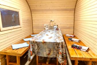 — Полностью укомплектован посудой, постельным бельём и средствами гигиены