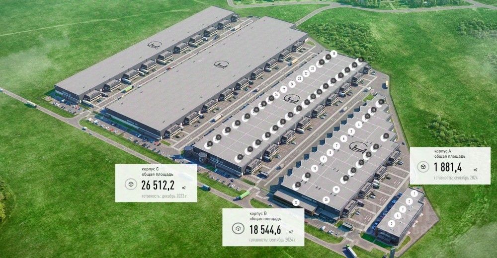 Номер ЛОТА: 1269. Продается в Многофункциональном Складском комплексе в Коледино блоки: по 1001,59 кв м, 623,54 кв м, 969,91 кв м . Отапливаемые помещения из них склад и офисная часть , склады класса А+. Высота потолков 12 м, полы антипылевые , нагрузка 4т/кв м . Охраняемая территория -пропускная система. Все коммуникации -отопление, водоснабжение, электричество, санузлы . Ворота- докового типа . Пожарная сигнализация , видео наблюдение. Стоянка для грузовых и легковых машин.