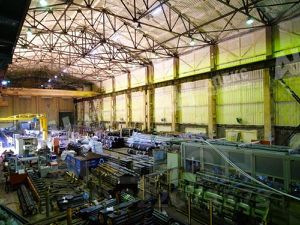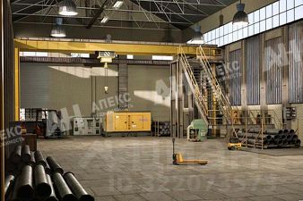 Корпус 1. Производственное 1-эт здание 1750 м2, габариты 25х70 м, материал стен кирпич, высота потолка 12 м, нагрузка на пол 15 тонн/м2, оборудовано двумя кран-балками (5 тонн), ворота для въезда фуры.