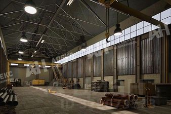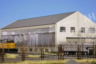 Корпус 2. Производственно-складское здание 1650 м2, габариты 18х92 м, арочный ангар-полусфера, каркасный, алюминиевый, утепленный. Рабочая высота в коньке 12 м, пол бетон-антипыль, нагрузка 8 тонн/м2, двое ворот, габариты 4,4х4м и 6х5,5м, уровень ноль.