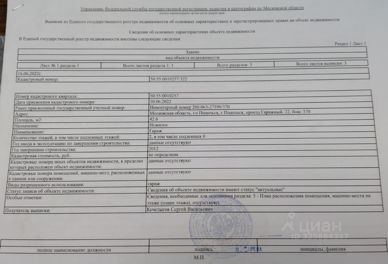 Гараж-бокс в Собственности более 3-х лет.