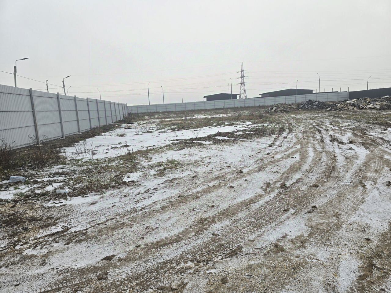 Территория огорожена, плодородный слой снят — площадка подготовлена под строительство.
