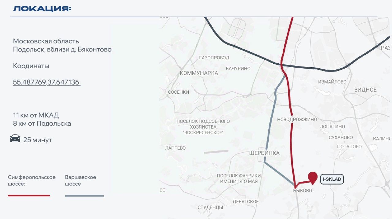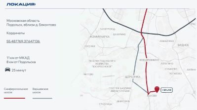 - Отличная транспортная доступность.12 км oт МКАД по Симфepoпoльскому или Варшавскому шоссе, 9 км до ЮЛА - Южно-Лыткаринская автодорога, круглогодичный подъезд