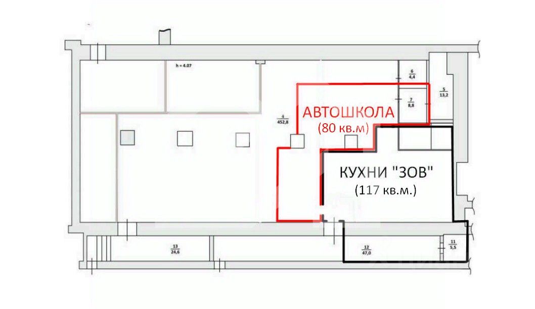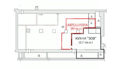-арендаторы: "Кухни Зов" (117 кв. м) и Автошкола (80 кв. м), КДА.