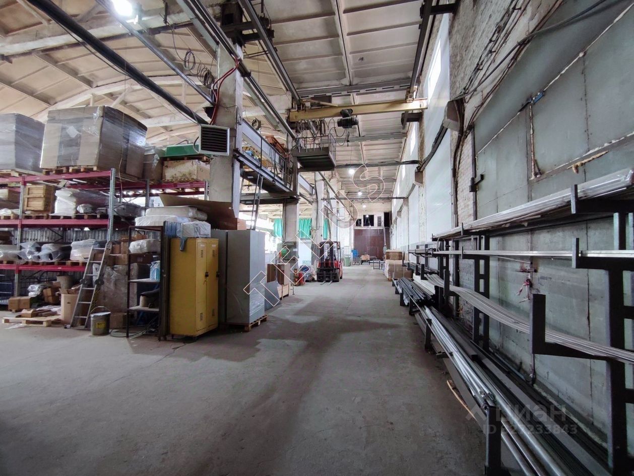 Стены - кирпич. Высота потолков - 9 метров. Полы - бетон. Ворота на нулевом уровне. Две кран-балки по 2 тонны. Инженерные коммуникации центральные: теплоснабжение, водоснабжение и водоотведение, электроснабжение. Выделенная эл. мощность - 250 квт. Габариты производственного помещения 83 м-длинна на 23 метра ширина .