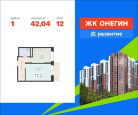 Продается квартира площадью 42.04 кв. м с отделкой white box на 12 этаже 22 этажного дома. Квартира находится в новом жилом комплексе "Онегин", расположенном по адресу: Московская область, г. Подольск, ул. Садовая 3, корп. 1.