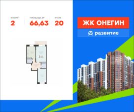 Продается квартира площадью 66.63 кв. м с отделкой white box на 20 этаже 22 этажного дома. Квартира находится в новом жилом комплексе "Онегин", расположенном по адресу: Московская область, г. Подольск, ул. Садовая 3, корп. 1.