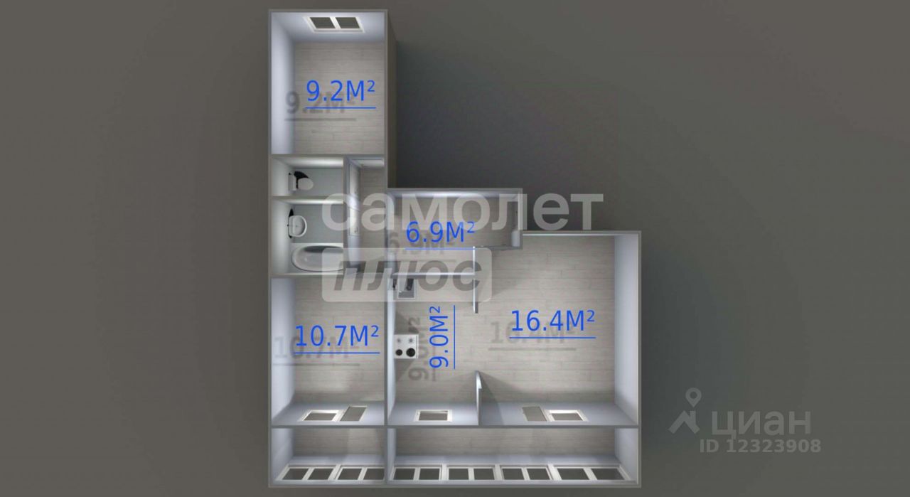 Арт. 104265341 Продаётся 3-комнатная квартира 59,5 м², переделанная в Евро-3 комнатную с узаконенной перепланировкой.