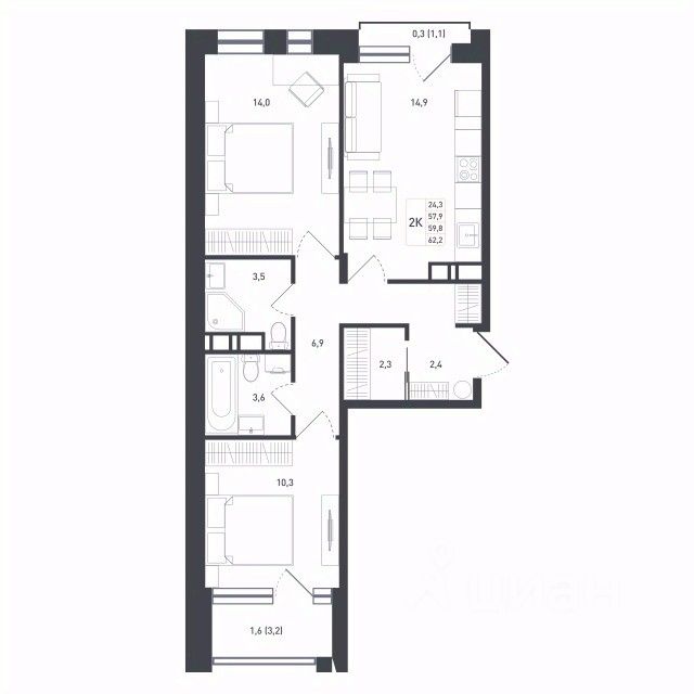 Продаётся 2-комнатная квартира в сданном доме (Дом 20), срок сдачи: III-кв. 2025, общей площадью 59.8 кв.м., на 4 этаже. Жилой комплекс комфорт класса "Новая Щербинка" строится в 10 минутах от станции МЦД-2 "Щербинка". В основу концепции проекта взята атмосфера уюта и спокойствия.