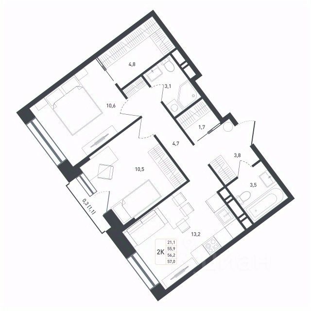 Продаётся 2-комнатная квартира в сданном доме (Дом 20), срок сдачи: III-кв. 2025, общей площадью 56.2 кв.м., на 7 этаже. Жилой комплекс комфорт класса "Новая Щербинка" строится в 10 минутах от станции МЦД-2 "Щербинка". В основу концепции проекта взята атмосфера уюта и спокойствия.