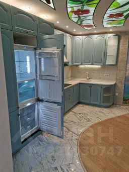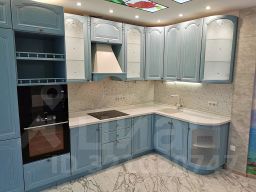кухня с новой техникой (плита, духовка, микроволновая печь, посудомоечная машина) и 2-мя встроенными холодильниками, столешница из искусственного камня