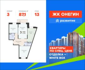 Продается квартира площадью 87.10 кв. м с отделкой White box. Квартира находится на 13 этаже 22 этажного дома, в новом жилом комплексе "Онегин", расположенном по адресу: Московская область, г. Подольск, ул. Садовая 3, корп. 1.