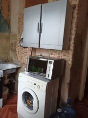 Сама квартира 3-комнатная 71,5 кв.м., состояние удовлетворительное. Каждая комната сдается. В коридоре и на кухне за нашей комнатой по договорённости закреплены места хранения. На кухне своя стиральная машина и микроволновая печь.