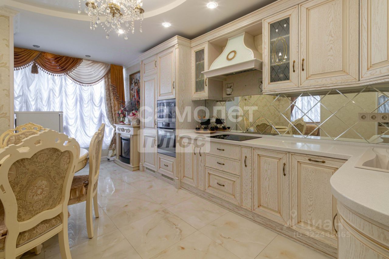 Просторная кухня — мечта любой хозяйки. С гарнитуром останется встроенная техника: варочная панель, духовой шкаф, микроволновая печь, посудомоечная машина, вытяжка, стиральная машинка.