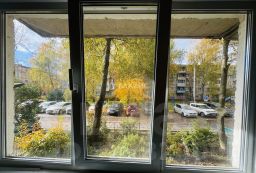 Квартира типа распашонка: окна выходят на улицу и во двор, обеспечивая достаточное естественное освещение. Много парковочных мест у самого дома и рядом.