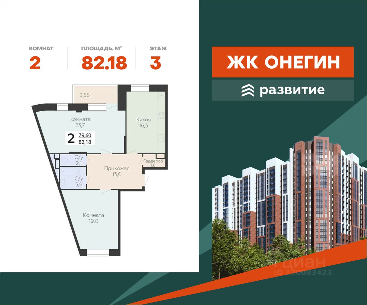 "Онегин" - начало новой жизни. Проект от девелопера "Развитие" расположился в центральной части Подольска - города-спутника столицы. Жилой комплекс состоит из 10 секций переменной высоты (20 - 22 этажа) и включает в себя 510 квартир, собственную инфраструктуру, закрытый благоустроенный двор-парк, подземный паркинг на 262 машино-места. Прекрасный баланс города и природы - ЖК "Онегин".