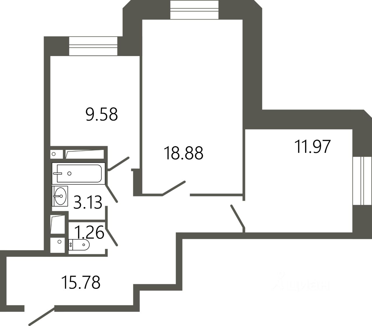 Общая площадь60,6 м²