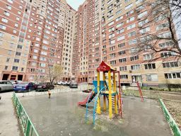 Ухоженный благоустроенный двор с детской и спортивной площадками. Автобусная остановка рядом с домом, в пешей доступности электрички.