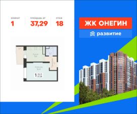 Продается квартира площадью 37.29 кв. м с отделкой White box. Квартира находится на 18 этаже 20 этажного дома, в новом жилом комплексе "Онегин", расположенном по адресу: Московская область, г. Подольск, ул. Садовая 3, корп. 1.