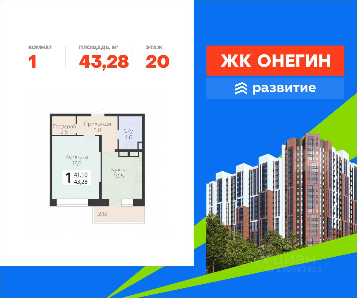"Онегин" - начало новой жизни. Проект от девелопера "Развитие" расположился в центральной части Подольска - города-спутника столицы. Жилой комплекс состоит из 10 секций переменной высоты (20 - 22 этажа) и включает в себя 510 квартир, собственную инфраструктуру, закрытый благоустроенный двор-парк, подземный паркинг на 262 машино-места. Прекрасный баланс города и природы - ЖК "Онегин".