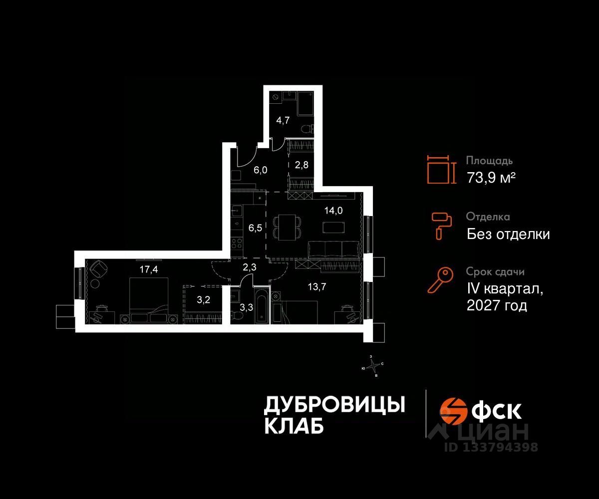 Продаётся 3-к квартира 15 общей площадью 73.9 кв.м на 1-м этаже 4 этажного дома. Без отделки.