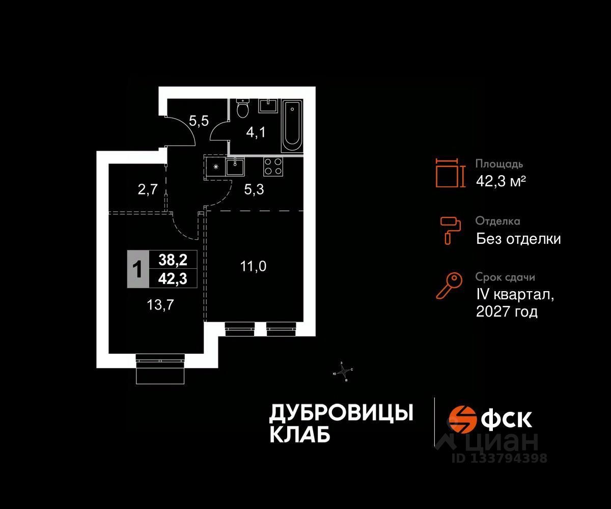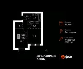 Продаётся 2-к квартира 141 общей площадью 42.3 кв.м на 4-м этаже 4 этажного дома. Без отделки.